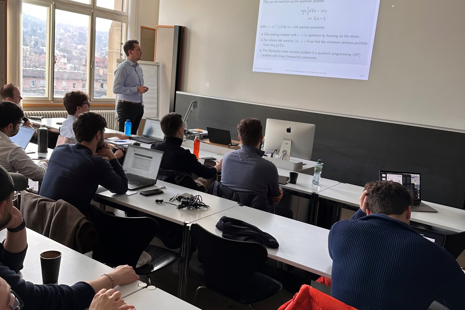 The block course "Quantitative Asset Management and Systematic Investing" provides a comprehensive introduction to the world of quantitative asset management and systematic investing. Under the guidance of Dr. Gianluca De Nard and Dr. Patrick Walker, students are introduced to the theoretical foundations as well as the practical application of these concepts.