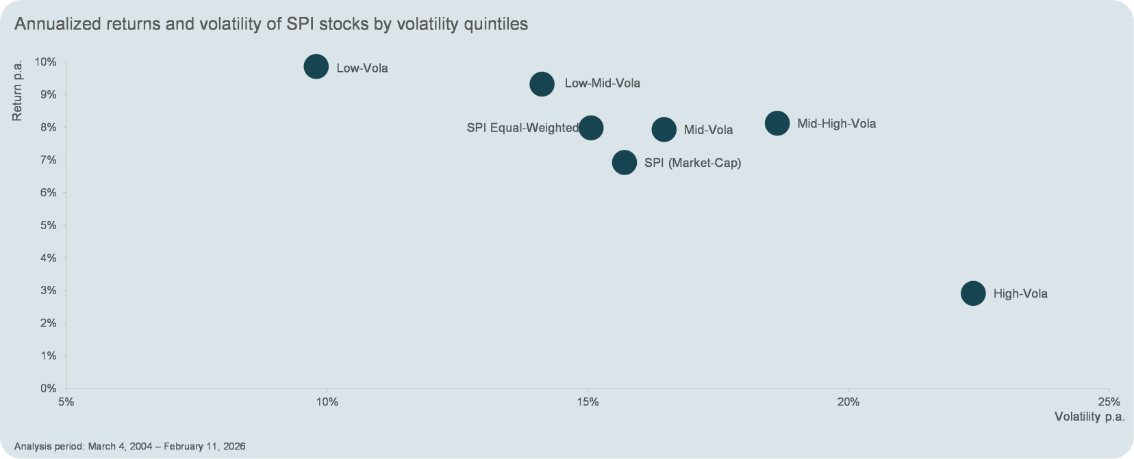 The minimum-variance approach offers a systematic way to reduce volatility and drawdowns within the SPI or SPI Extra universe without sacrificing the long-term equity market premium. While the approach cannot outperform in every phase—during strong rallies, a defensive portfolio will tend to lag behind the benchmark— However, over a full cycle, the goal of providing Swiss equities with a more efficient risk profile and a more stable return path is achievable—the OLZ funds prove this! For investors who take not only the return but also the path to it seriously, this approach is highly relevant in a world marked by uncertainty.