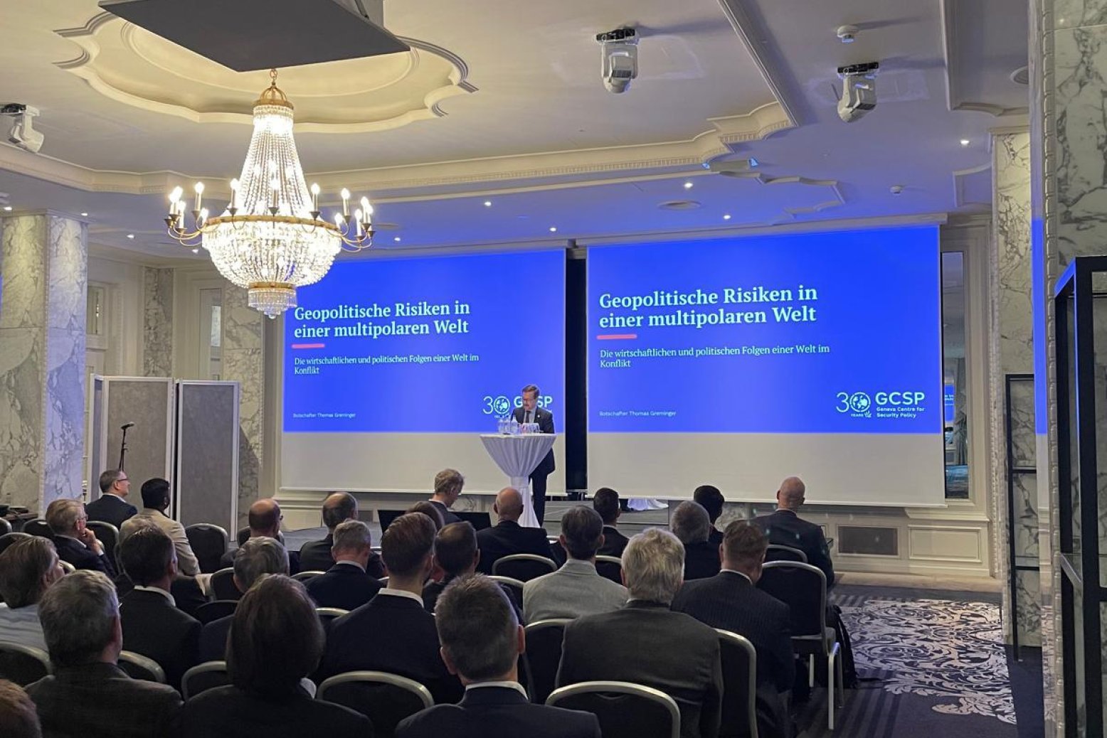 Genau diesen Fragen nahm sich Botschafter Thomas Greminger, Direktor des Genfer Zentrums für Sicherheitspolitik (GCSP) an und erläuterte in seinem Vortrag, welche Risiken in der neuen multipolaren Welt vorherrschen und welche Rollen die politischen Akteure einnehmen. Speziell hebt er drei Brandherde hervor, namentlich den Ukraine-Krieg, die Konflikte im Nahen Osten und die Spannungen im Asiatischen Raum, in denen Eskalationen zwar nicht beabsichtigt, aber dennoch nicht auszuschliessen sind. Bei aller medialen Negativität und Schwarzmalerei wollte er aber zum Schluss betonen, dass es durchaus auch positive Entwicklungen in der nahen Vergangenheit gab, wie der Sturz des Assad-Regimes, der neue Chancen für die Bevölkerung in Syrien bieten kann oder der aktuelle Waffenstillstand im Nahostkonflikt.